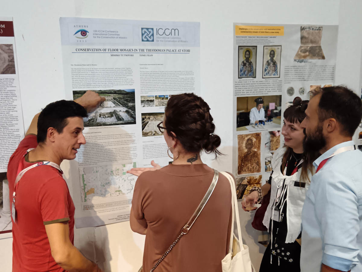 Петнаесеттата конференција на меѓународниот комитет за конзервација на мозаици (International Committee for the Conservation of Mosaics-ICCM) беше организирана во Атина во периодот од 19 до 24.10.2025 година. На конференцијата учествуваа голем број на експерти од повеќе земји од светот кои ги презентираа своите истражувања од областа на заштитата на мозаичното наследство во шест сесии со вкупно 40 орални презентации, дополнети со две сесии за постери и видеа, со вкупно 35 изложени постери и 11 видеа.