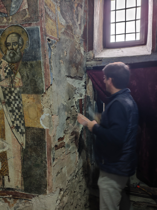 Продолжување на конзервацијата на живописот на црквата Св. Богородица, село Лешок, каде е откриен трет најстар слој фрески, што сведочи за повеќевековниот континуитет на оваа историска локација.