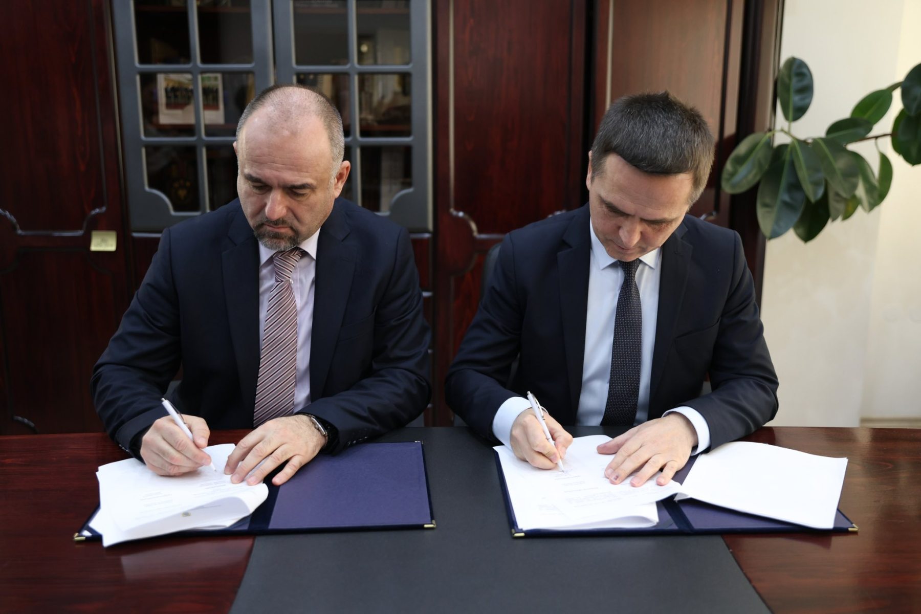 Потпишување Mеморандум за соработка за обнова на Саат-култата во Тетово, м-р Александар Јорданоски, директор на Националниот конзерваторски центар и , Биљал Касами, градоначалник на Општина Тетово