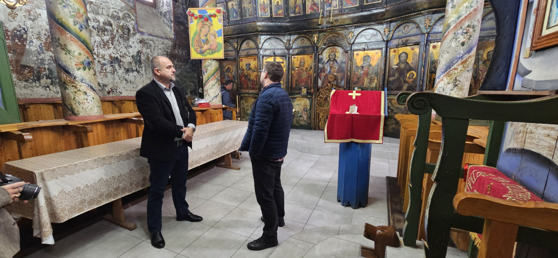 Организациона средба за отпочнување на непосредната заштита на ѕидното сликарство во црквата Св. Константин и Елена во с. Мокрино, Општина Ново Село